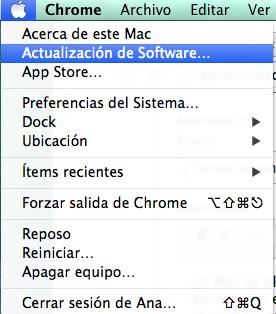 Asegúrate siempre de estar trabajando con la última versión de OS X y de que tienes las aplicaciones actualizadas. Es muy fácil comprobarlo y actualizar: haz click en el icono de la manzana en la parte superior izquierda de la pantalla y vete a "Actualización de software".
