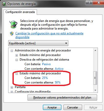 Todos los equipos ofrecen la opción de configurar cómo quieres que gestione la energía. En Windows está en Panel de Control>Opciones de energía. Ahí, en Cambiar la configuración del plan>Configuración avanzada de energía>Cambiar la configuración avanzada de energía, localiza el Administrador de energía del procesador y sitúalo por debajo del 100%. Vete probando porcentajes que te vengan bien. Si es un Mac, sigue este proceso.