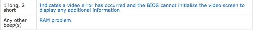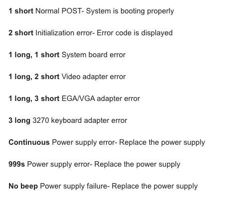 En el caso de que tu BIOS sea de IBM, los pitidos del ordenador tienen los significados que ves en la captura de pantalla.